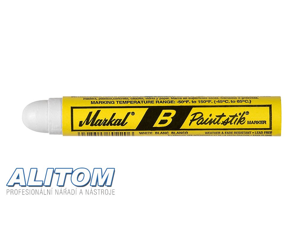 Popisovač v tyčince vhodný pro všechny typy použití na studených materiálech. Markal B umožňuje popisování jakéhokoliv typu materiálu, je vhodný i pro značení mastných a zkorodovaných ploch či pro značení mokrého dřeva. Barva je odolná proti vodě a UV záření.
